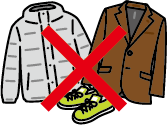 (例)ナイロン・ビニール及びレザー(皮革・合成皮革)素材のもの、ダウンの衣類(コート、ベスト等)