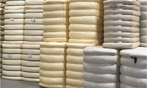 反毛綿とバージン原料とを相応しい割合でブレンドして紡績し、糸の撚回数や番手を変えることで、バージン繊維製品とほぼ同等のクオリティが可能です。